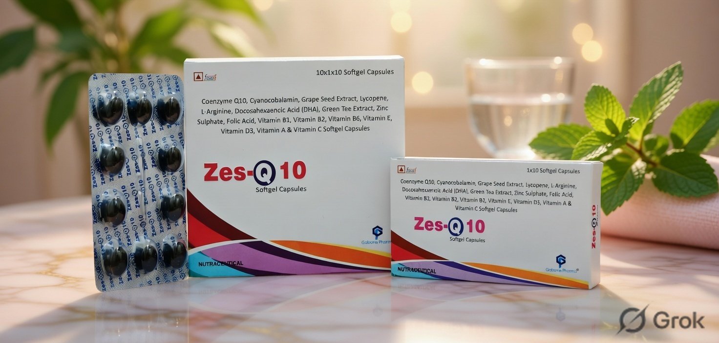 - Key Ingredients: Coenzyme Q10 (CoQ10), Cyanocobalamin (Vitamin B12), Grape Seed Extract, Lycopene, L-Arginine, Docosahexaenoic Acid (DHA), Green Tea Extract, Zinc Sulphate, Folic Acid, Vitamin B1 (Thiamine), Vitamin B2 (Riboflavin), Vitamin B6, Vitamin E, Vitamin D3, Vitamin A, Vitamin C.