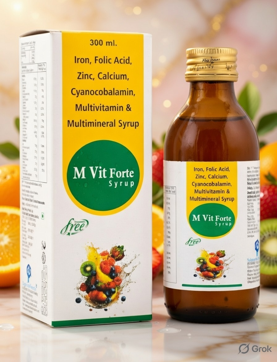 - Category/Use: Nutraceutical/multivitamin syrup — General nutrition, anemia prevention, immunity, and energy support (iron + multivitamin/multimineral tonic, often for weakness, growth, or deficiency states).